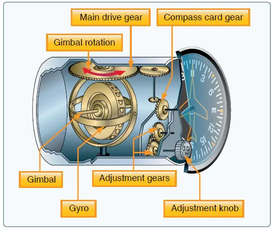 Heading indicators that do not have this automatic northseeking capability are called “free” gyros and require periodic adjustment. It is important to check the indications frequently (approximately every 15 minutes) and reset the heading indicator to align it with the magnetic compass when required. Adjust the heading indicator to the magnetic compass heading when the aircraft is straight and level at a constant speed to avoid compass errors.
