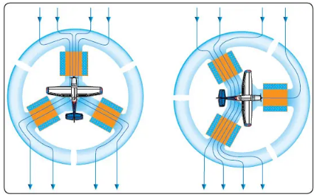 Figure 1-28. The current in each of the three pickup coils changes with the heading of the aircraft.
