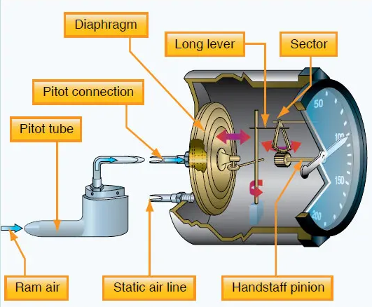 The ASI is the one instrument that utilizes both the pitot, as well as the static system. The ASI introduces the static pressure into the airspeed case while the pitot pressure (dynamic) is introduced into the diaphragm. The dynamic pressure expands or contracts one side of the diaphragm, which is attached to an indicating system. The system drives the mechanical linkage and the airspeed needle.