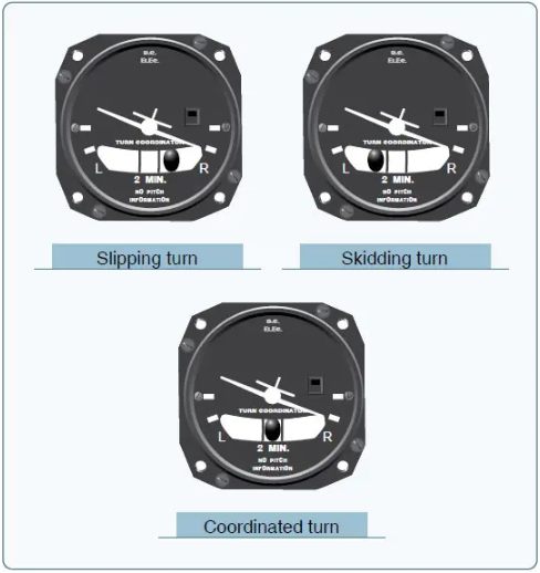 During preflight, ensure that the inclinometer is full of fluid and has no air bubbles. The ball should also be resting at its lowest point. When taxiing, the turn coordinator should indicate a turn in the correct direction while the ball moves opposite the direction of the turn.