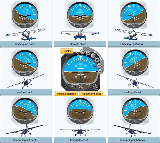 Figure 1-24. Attitude representation by the attitude indicator corresponds to the relation of the aircraft to the real horizon.